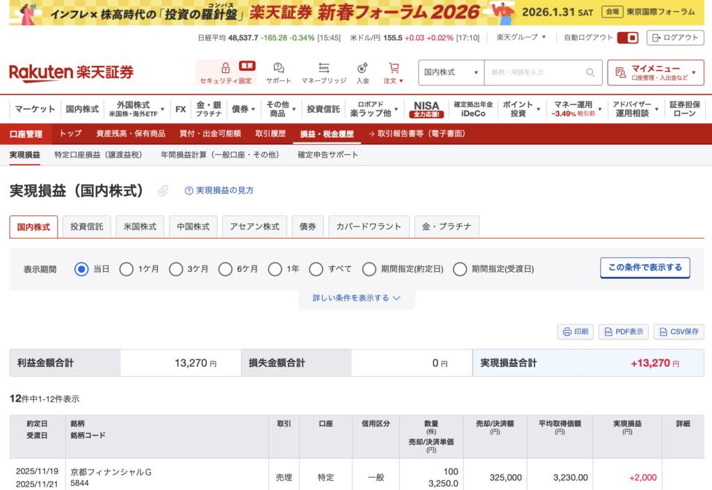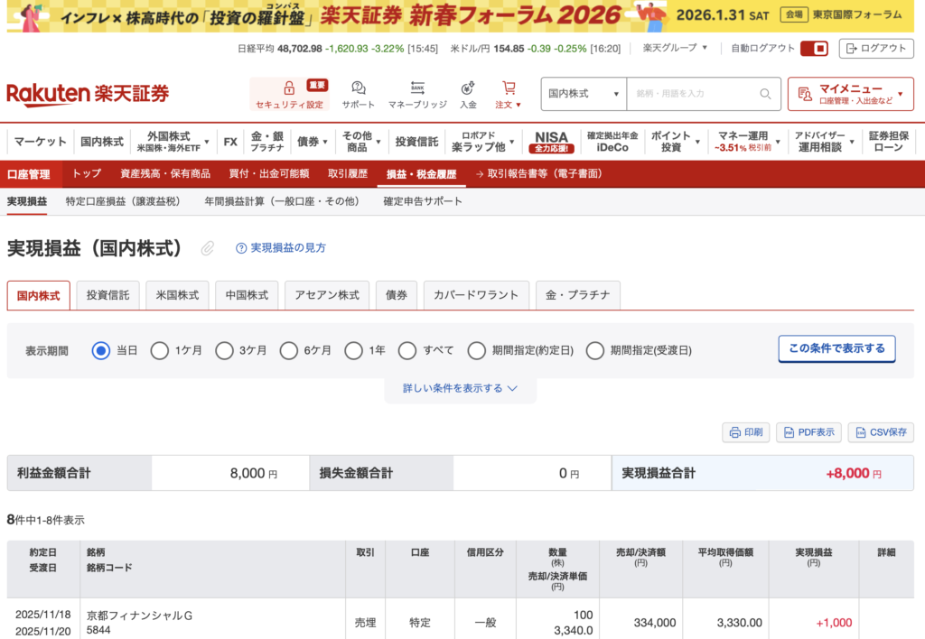 さるしゃちょーの投資 【記録】2025年11月25日:+万円