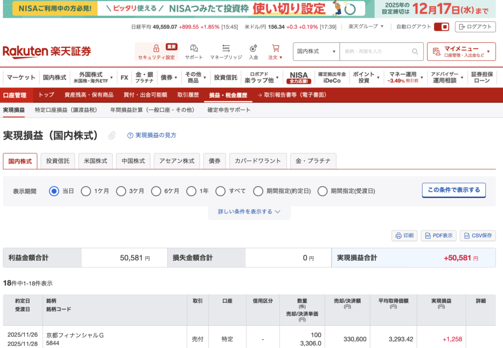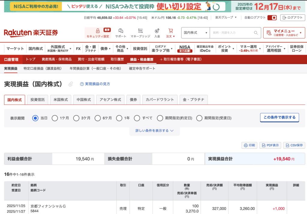 さるしゃちょーの投資 【記録】2025年11月28日:+万円
