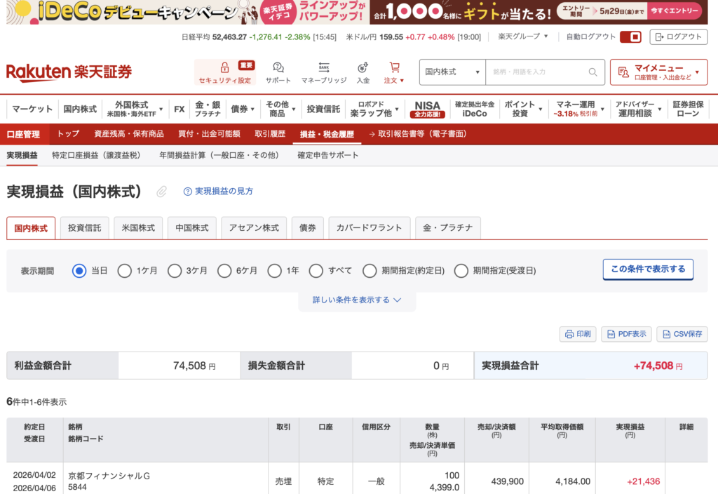 さるしゃちょーの投資 【記録】2026年4月6日:+万円