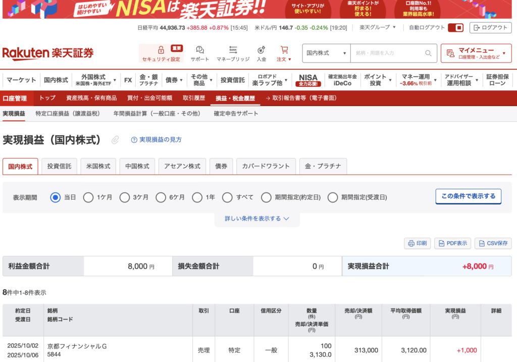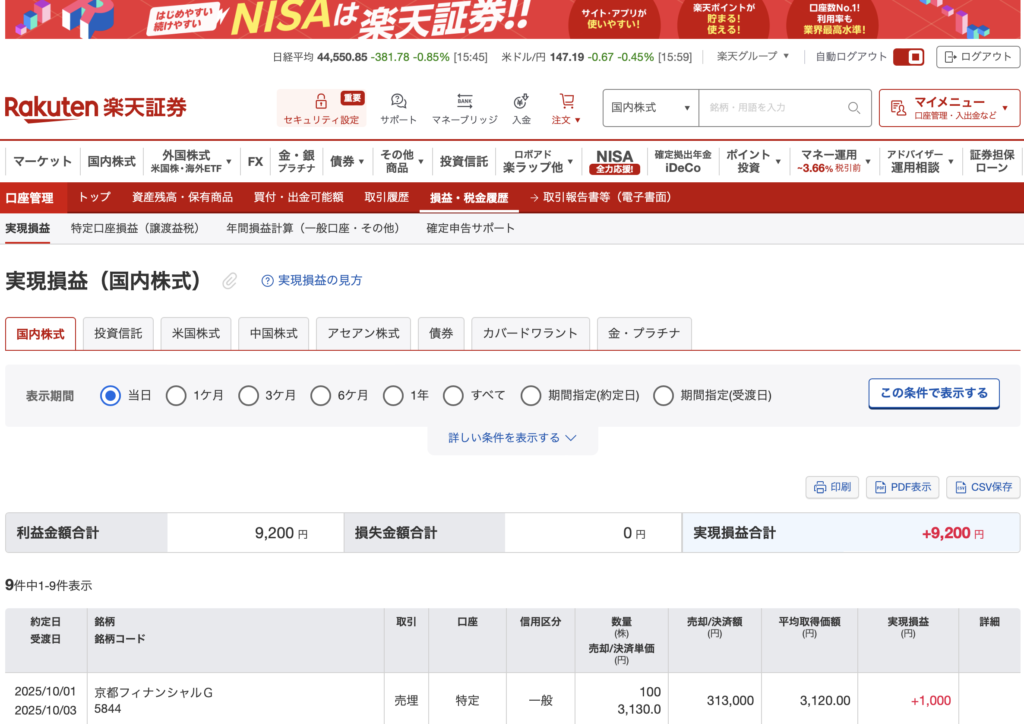 さるしゃちょーの投資 【記録】2025年9月30日:+1万7000円 京都フィナンシャルグループ(5844) +1万7000円9月相場終わり!今月は、219,086円稼ぎました!まぁまぁ、こんなもんでしょう。10月、11月、12月と、激しい相場になってほしいと強く願っています。暴落を警戒して取引しているので、... 2025.09.30 さるしゃちょーの投資