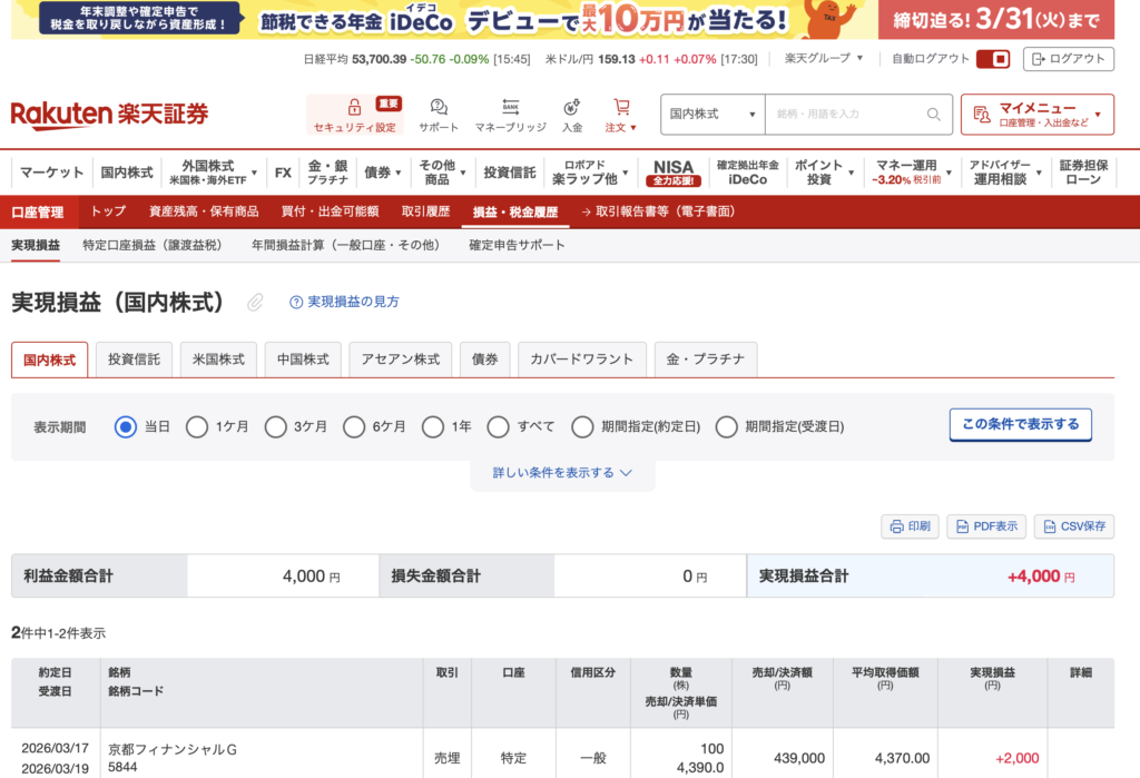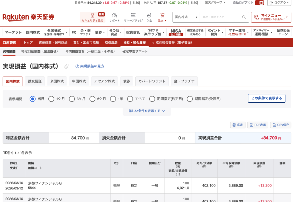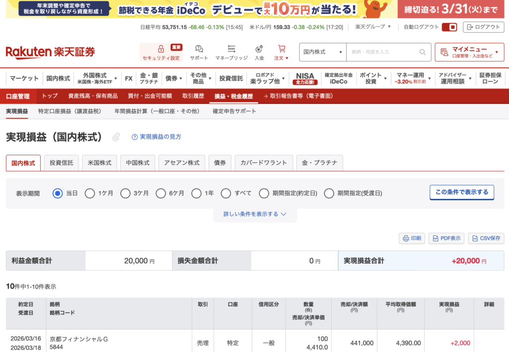 さるしゃちょー(猿社長)の投資 【記録】2026年3月26日:+7467円
