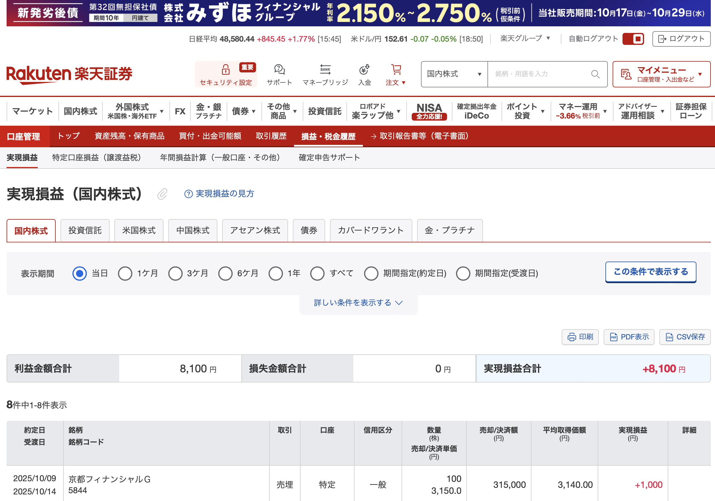 【記録】2025年10月9日:+8100円