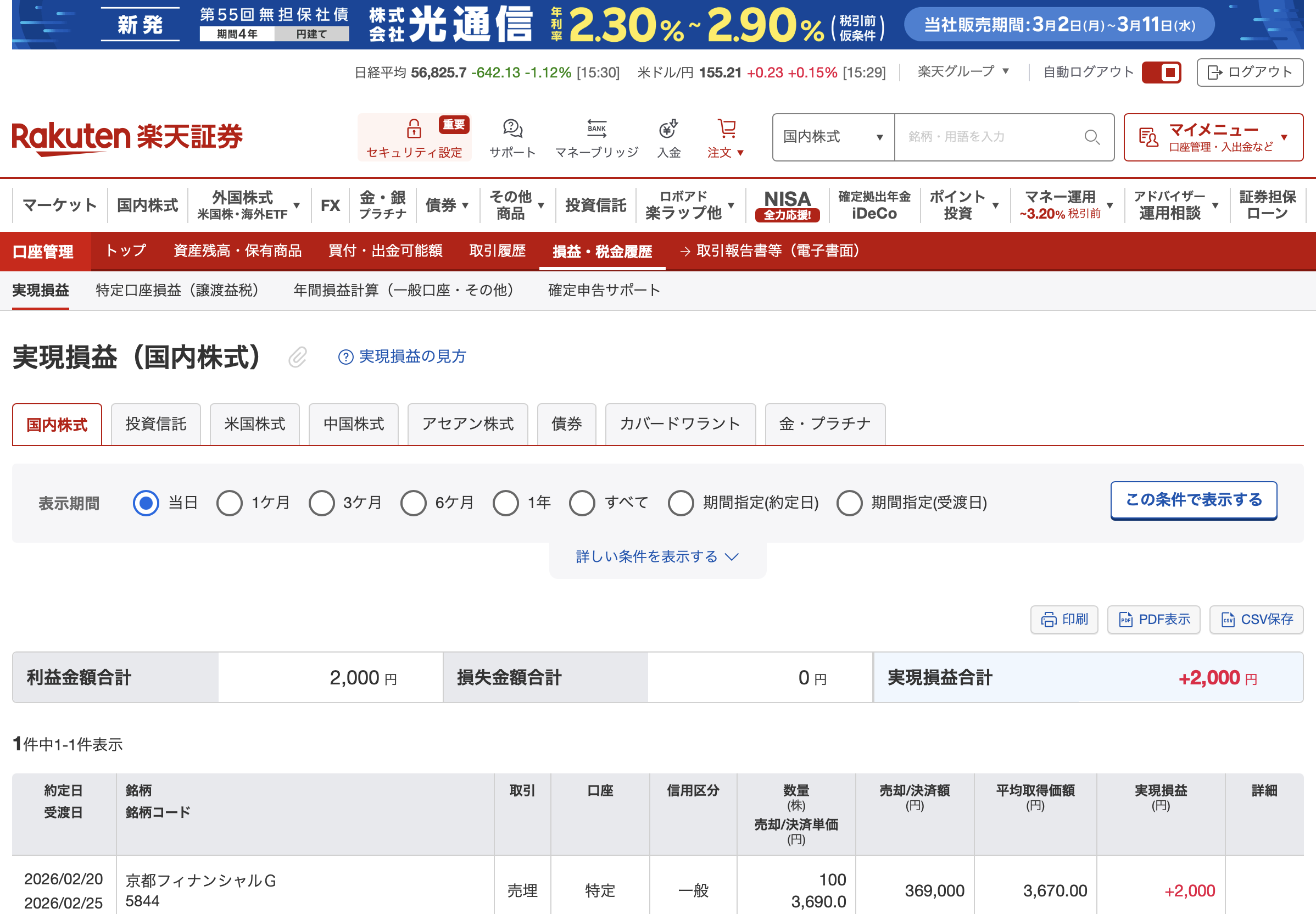 【記録】2026年2月20日:+2000円