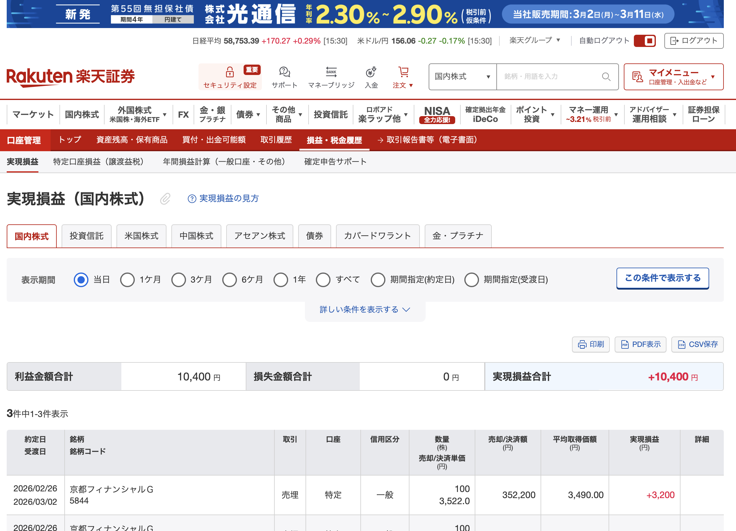 京都フィナンシャルグループ(5844) +1万0400円