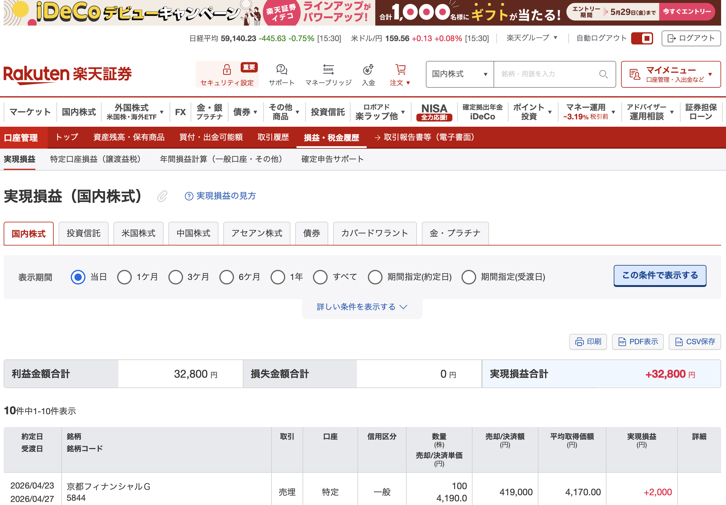 京都フィナンシャルグループ(5844) +3万2800円